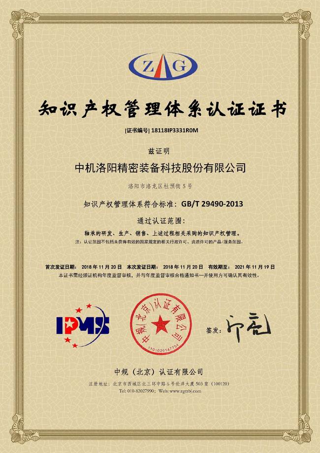 2018年11月12日至13日,中規(guī)(北京)認證有限公司工作人員到我公司進行知識產權管理體系審查認證,經過為期兩天的檢查與考核,對公司知識產權管理給予了肯定,最終頒發(fā)“知識產權管理體系認證證書”。